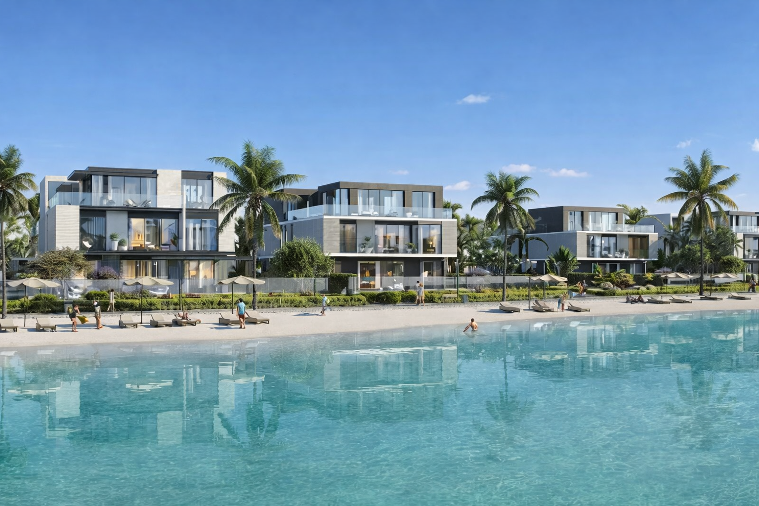 Exclusive lagoon-facing villas with panoramic skyline views and architectural precision.
